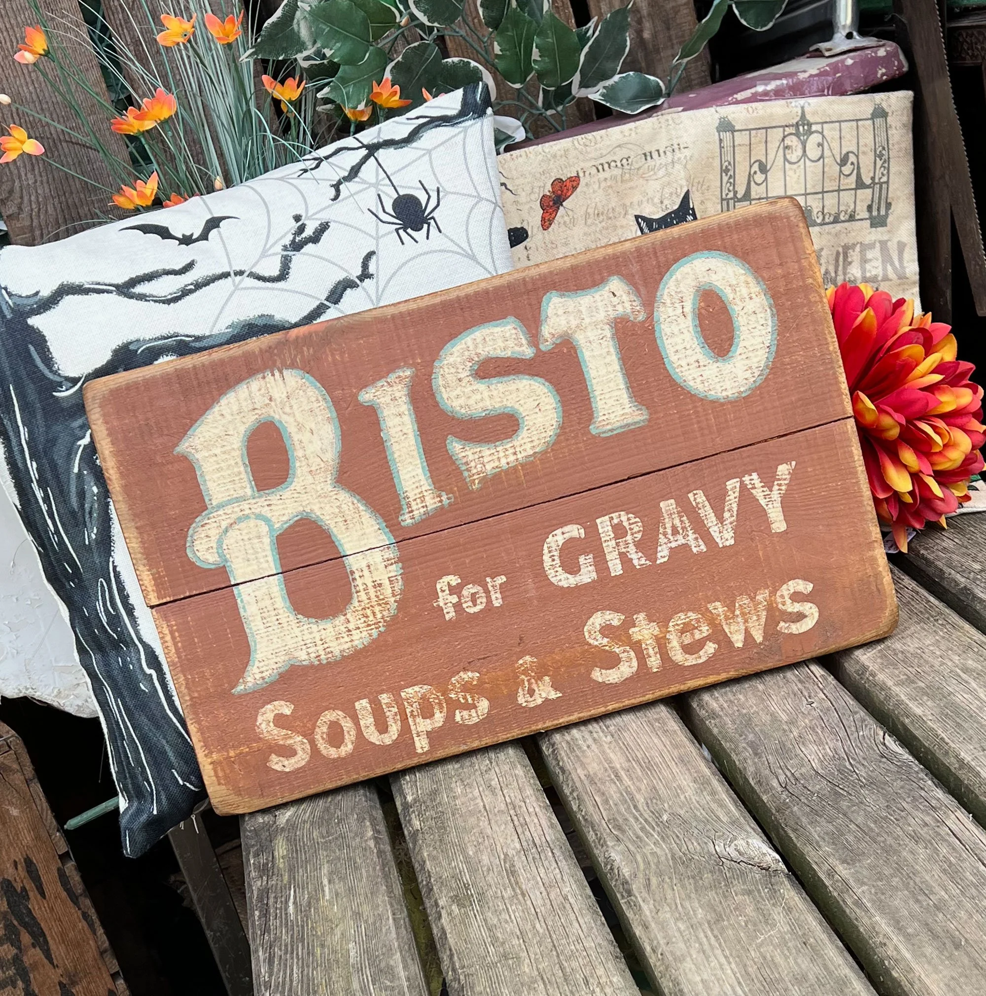 Wood. red and grey box with domed, separate lid.