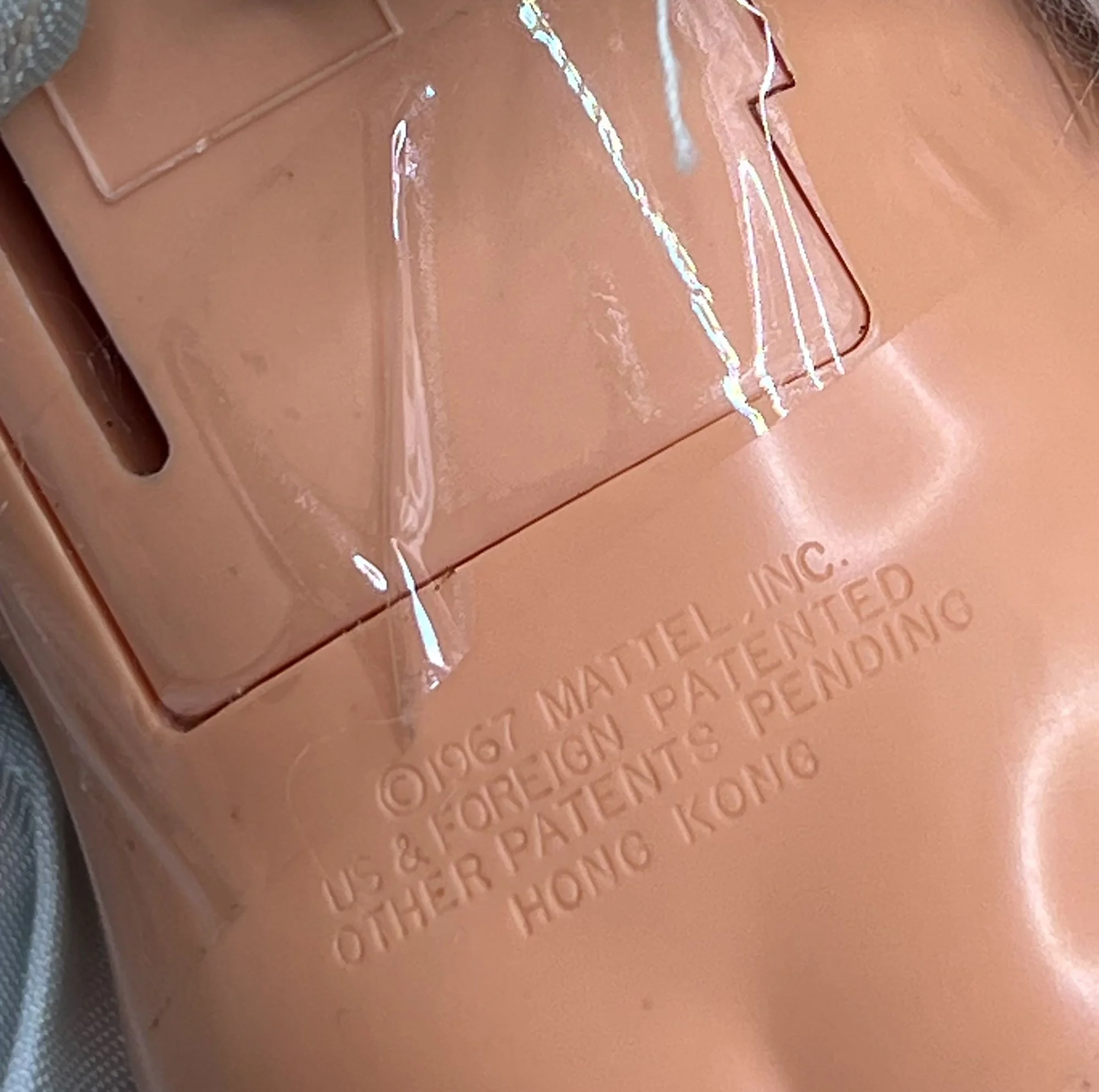 1967, Mattel, battery operated doll. Makers marks to back, 1967 Mattel Inc US and Foreign patented other patents pending. Hong Kong.