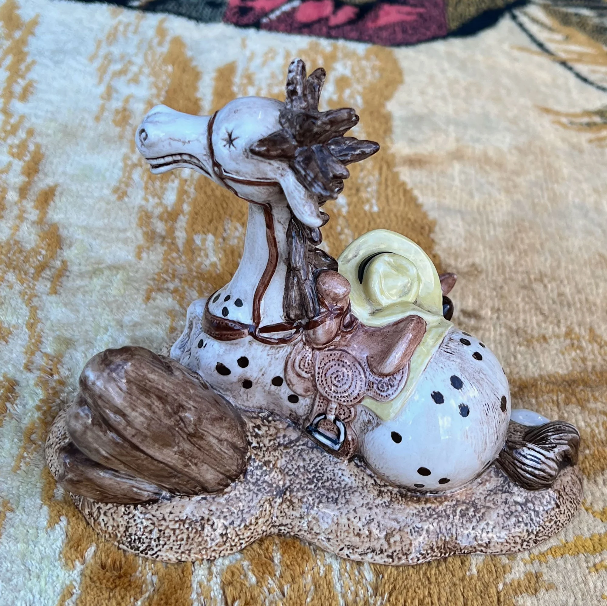 Ceramic, pretty, cream vase with bid and pink flower design to front. Vase has decorative, relief ring handle design to either side.