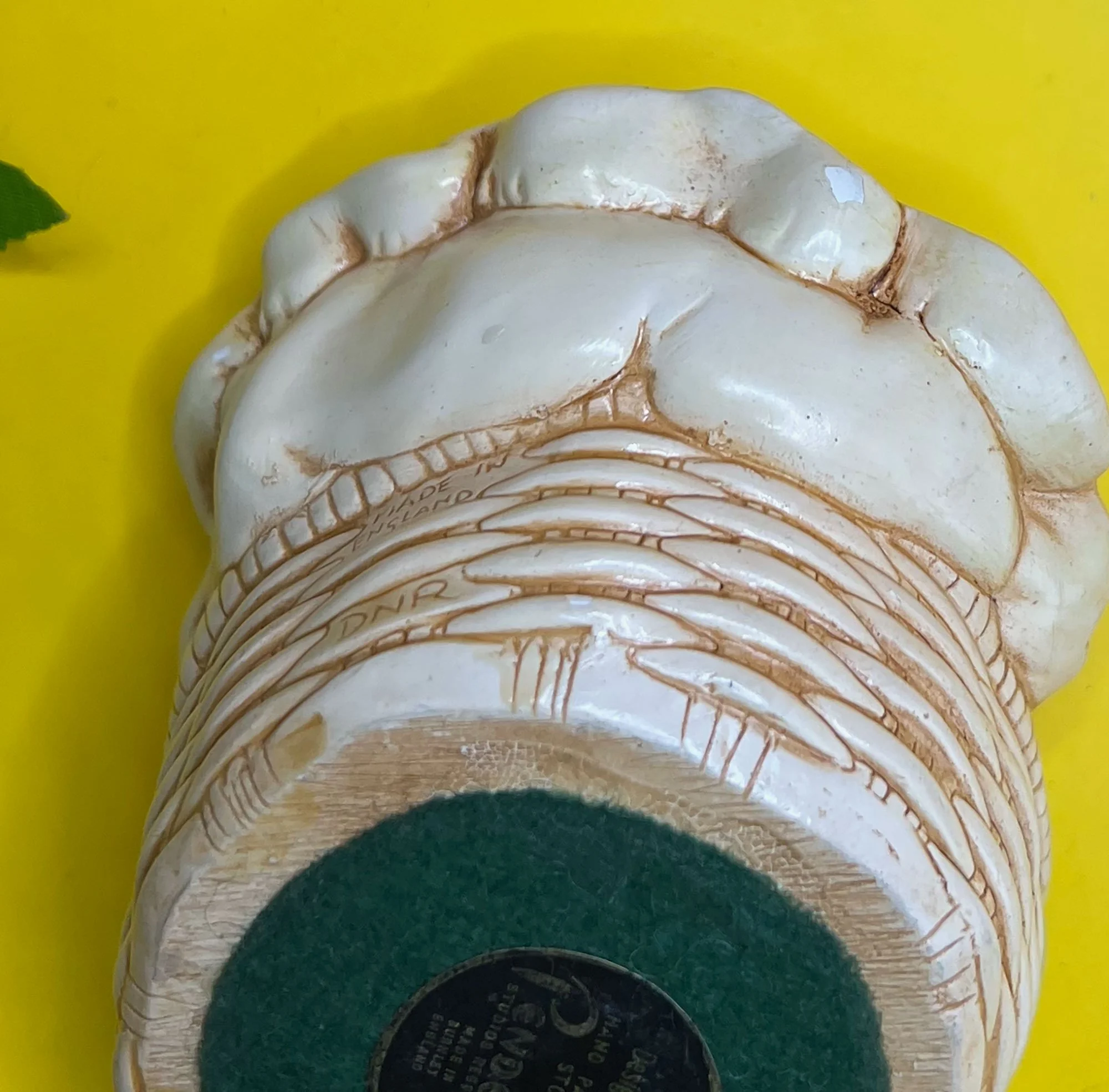 Vintage, satin monkey in yellow with embroidered flowers. Made in China.