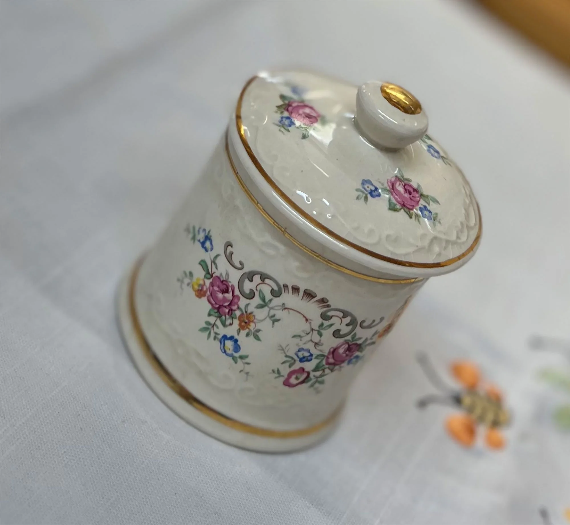 This pretty pod has a colourful mix of ceramics, sparkly textiles, glass, cats, birds and signs